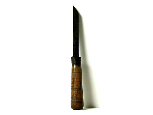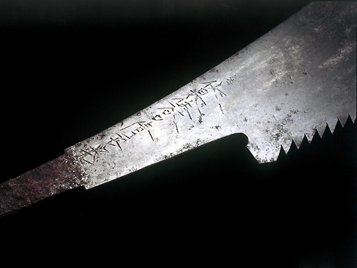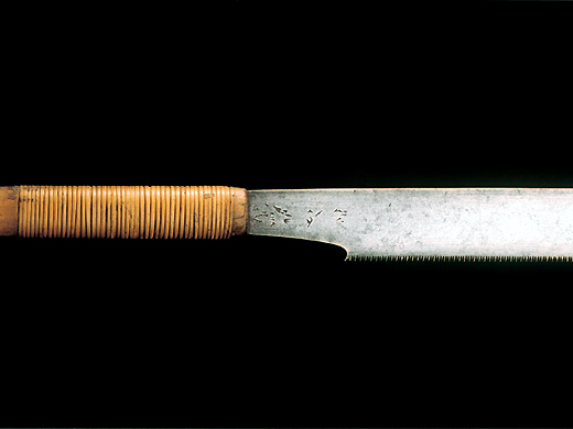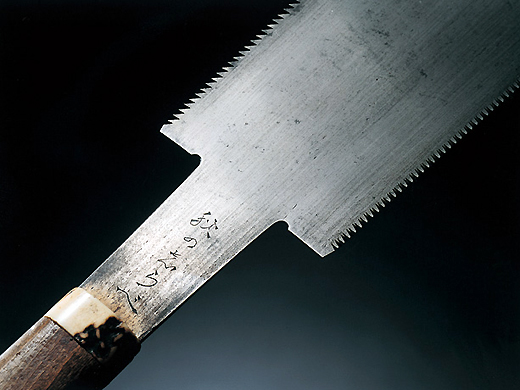二代宫野铁之助(1901-1996)是播州三木的锯齿锻造。11岁开始帮忙家业,1938年袭名二代宫野铁之助。据说他充满了锻冶的才能,很快就超越了兄弟姐妹的实力。一生都致力于保护古式传统技术,并将其技术传达给构成。 照片中的双刃锯是1954年为了神户的栋梁笹濑善雄而锻炼出来的。