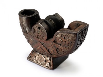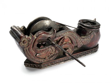照片是在泰国中部收集的墨壶中以神鸟为主题的。泰国的墨壶的构造和功能与日本和中国没有区别,但是可以看出重视主题造型的倾向,其他还有猴子、青蛙、兔子的形态雕刻而成。