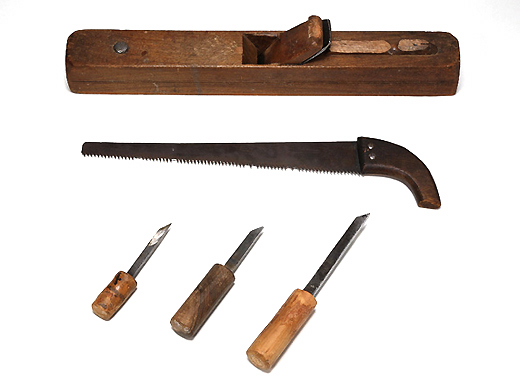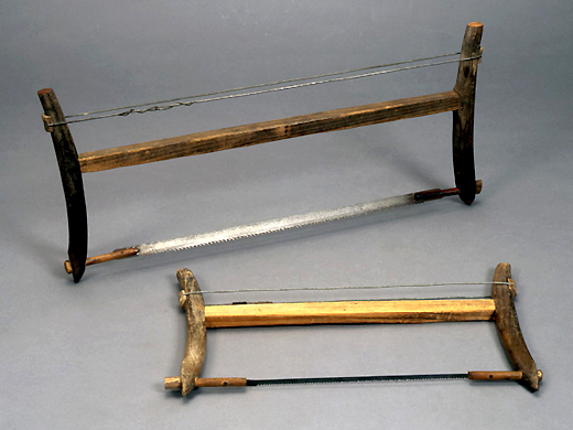日本木匠工具的起源一般认为是在中国,但是今天形状和用法有着各种各样的差异。锯子一看就知道了,使用有框框的锯子推使用切断木材。在日本,曾经引进了竖锯的14~15世纪左右,使用了被称为大锯的框架锯。