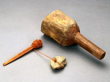 不丹是夹在印度和中国之间的小国。在不丹、印度北部、尼泊尔等喜马拉雅山的山脚下,生活着建造木造寺院和住宅的民族。照片上的右手是丝卷,左手是木槌,具有原始的力量这一点很有趣。