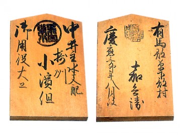 江户时代的建筑工程是由幕府和藩的作事部门控制的,但是对于五畿内(山城、大和、摄津、河内、和泉)、近江这六个国家,在草创期有功的中井家担任了这个职务。管区内的木匠组在得到中井家的认可后才能参加工程,许可证是证明那个资格的东西。