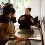 对于客人的提问,石本先生一个人一个人认真地回答。从作品中可以看出缜密、纤细,平时是非常亲切的人品。 |