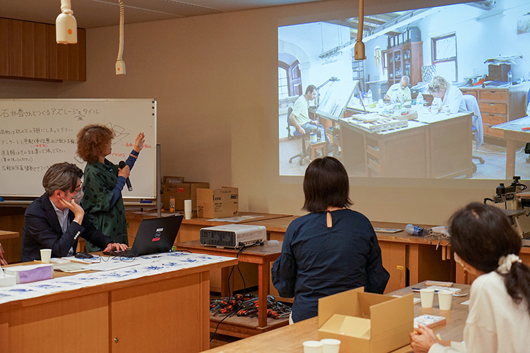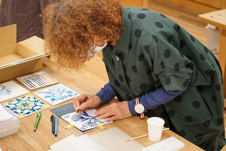 研讨会“与石井春先生共同打造的阿兹雷焦塔尔” 日期2022年10月15日星期六 作为2022年10月1日开幕的“石井春-阿兹雷乔与空间”展览的纪念活动而举办的瓷砖研讨会。最大的魅力就是能和作家石井春先生一起画瓷砖。 ![]() 首先15分钟介绍了葡萄牙的阿兹雷乔。介绍了石井先生制作的里斯本近郊的福尔图纳工房的情况。 |