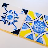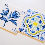 ![]() 瓷砖和颜料也想使用葡萄牙制,但是由于进口费等的关系,材料费变得相当高,所以这次决定挑战日本制的。 图案可以自己设计,也可以使用样品。 |