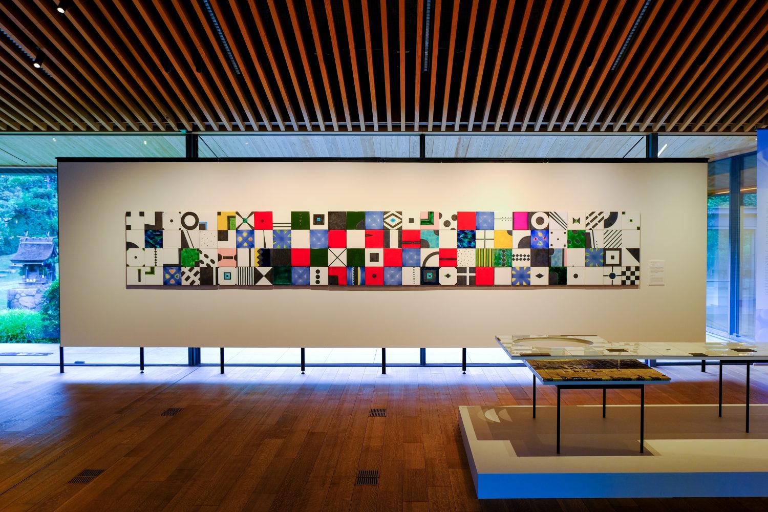 我们将以照片报告的形式呈现2022年10月1日开幕的“石井春-阿兹雷焦与空间”展的情况。 ![]() 会场以1F大厅为中心配置在阳台和中庭等各处。首先映入眼帘的是葡萄牙的阿兹雷焦和日本瓷砖混合而成的作品《航海餐桌》。这是一部以大航海时代在波浪中摇曳的帆船中的餐桌为印象的作品。 |
