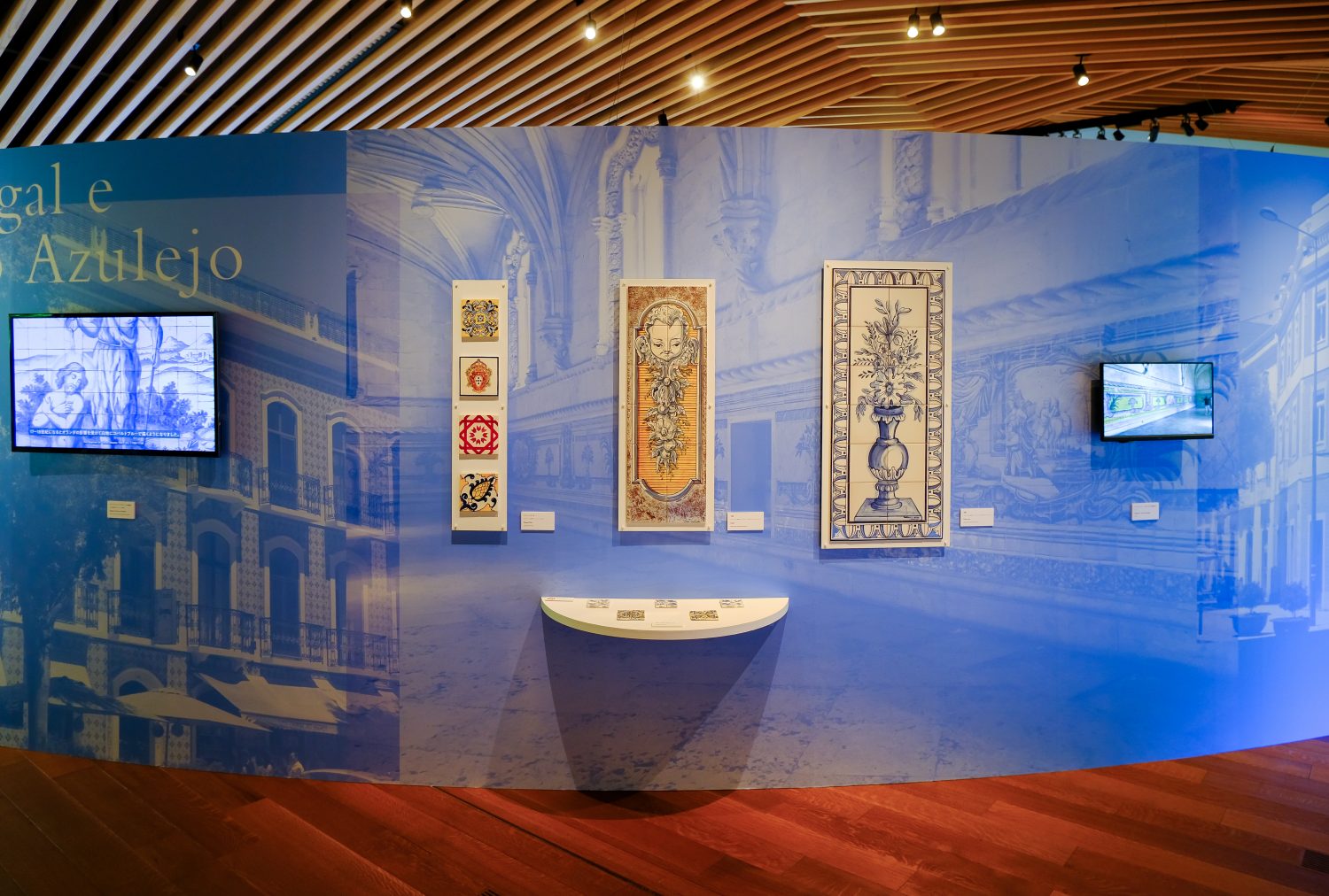 ![]() 弯曲的墙面上结合影像介绍了葡萄牙传统的阿兹雷乔。阿兹雷焦都是在里斯本附近的福尔图纳工房烧制的。 |