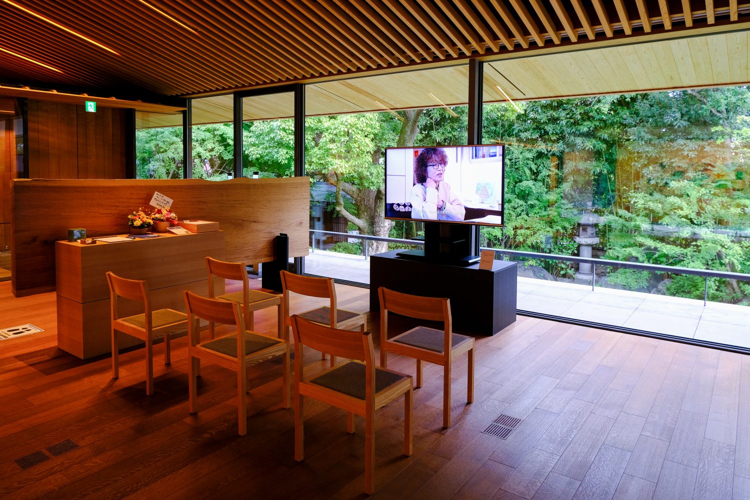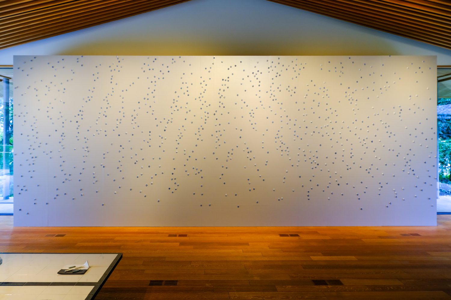 ![]() 作品不仅在1F大厅,在馆内各处都有展示。1楼露台上设置了从京都寺庙的庭院中获得灵感的“水面景色”。 |