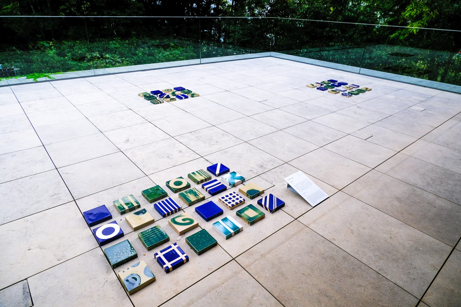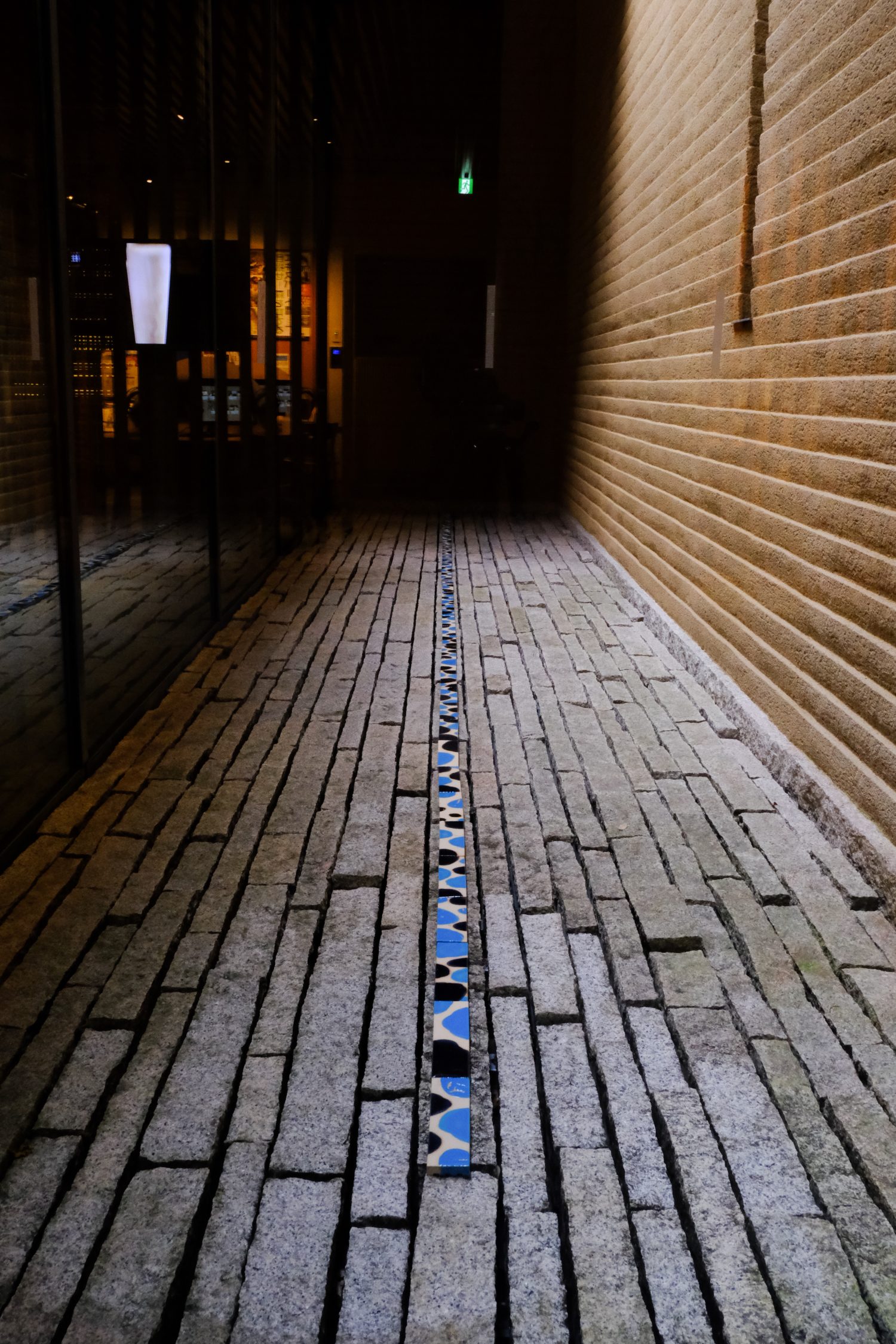 ![]() 最底层的B2F也有作品。这是一部在铺成线状的石板上,描绘了一条瓷砖线的“冒险之路”作品。这些都是以阿兹雷乔为首的装饰瓷砖,为建筑空间增添色彩,是竹中大工道具馆建筑特有的展示。请务必近距离观看。 |