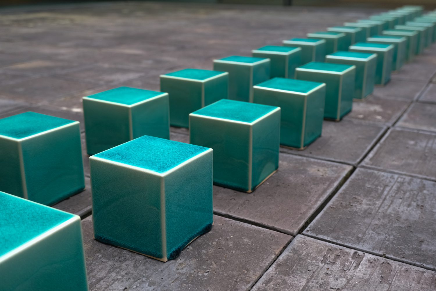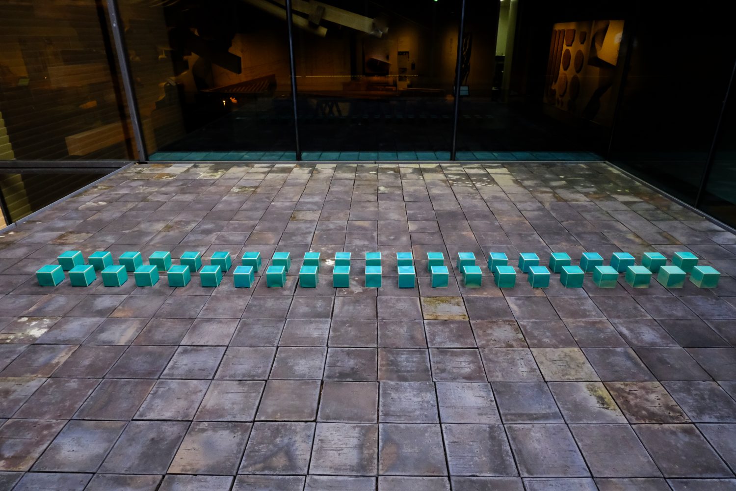 ![]() ![]() B1F瓦敷的院子里展示着立方体排列的“海风之路”。与现有建筑的和谐值得一看。另外,下雨天看的话,可以享受到不同的氛围。 |