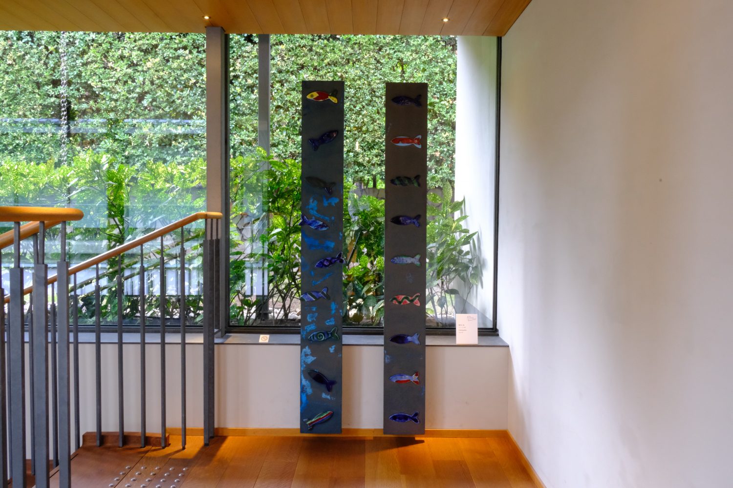 ![]() 在下B1F途中的舞场里,可以用可爱的鱼的瓷砖作品《想玩的鱼》来迎接我们。 |