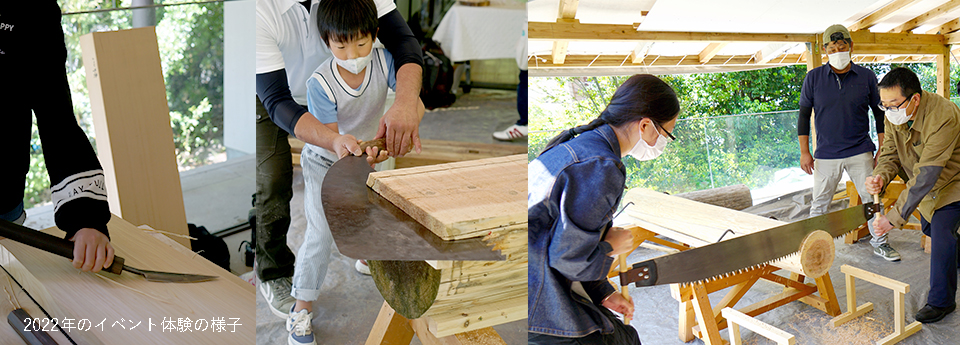 在机器的木材成为主流之前,用前锯大锯和台切等手具进行木材加工。现在不试着体验一下很难看到的前锯大锯和台切吗?- 日期