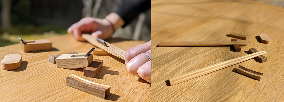 选择喜欢的材料,使用3种刨子(豆铲子台刨、南京刨、豆刨)制作2个筷子架。