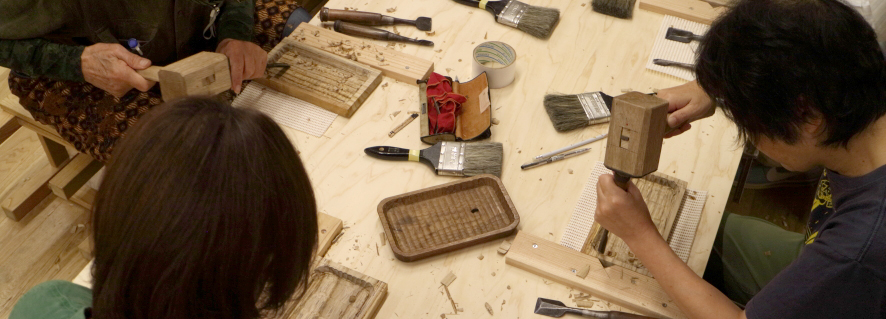 在昭和时期沉入水库的我谷村(现在的石川县加贺市)建造的朴素的栗子盘“我谷盆”。江户时代初期以来,作为生活道具而制作的我谷盆,是将栗子的圆木切成薄片,用丸跳蚤和平跳蚤等极少数道具雕刻而成的朴素的盘。