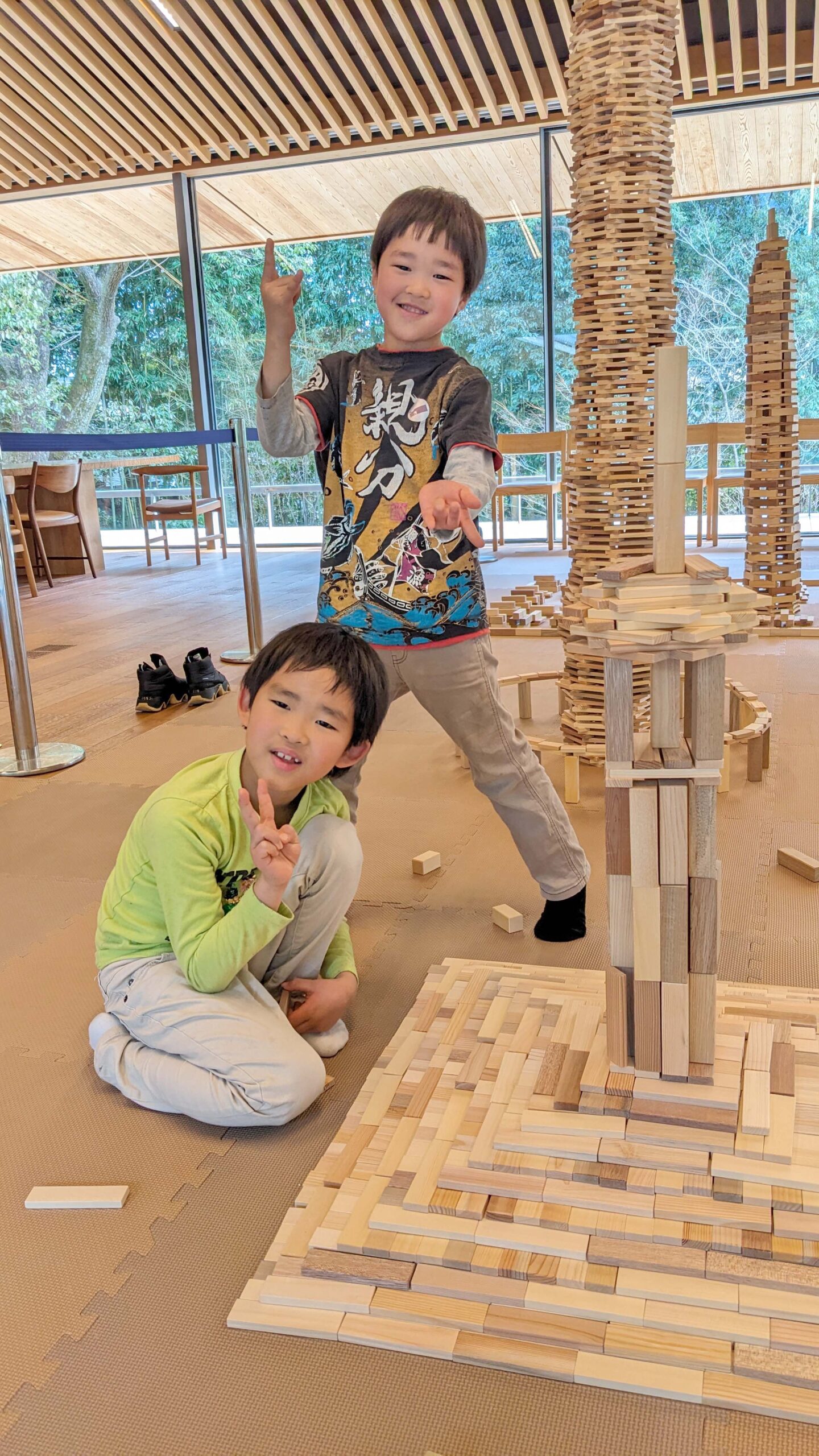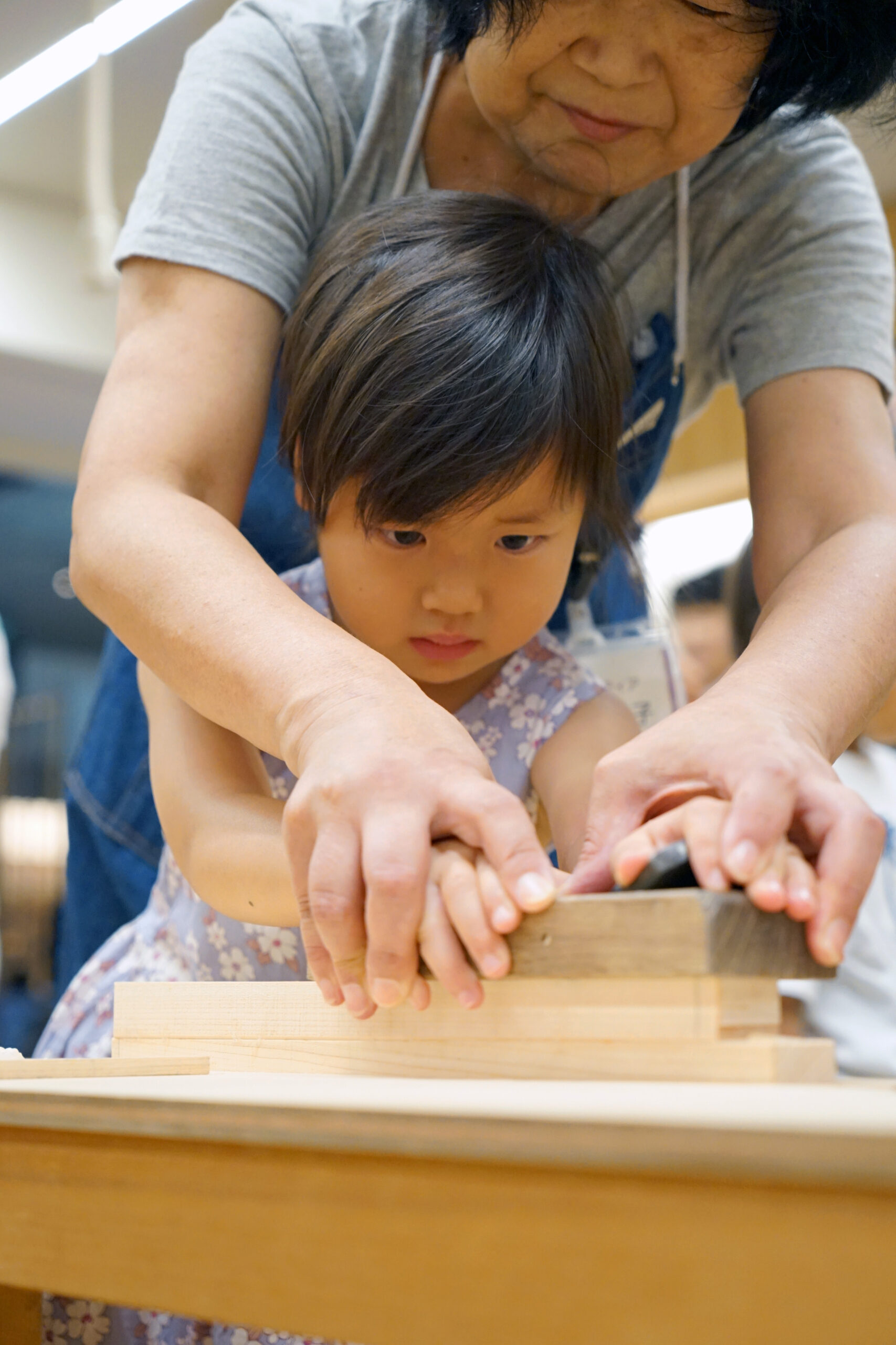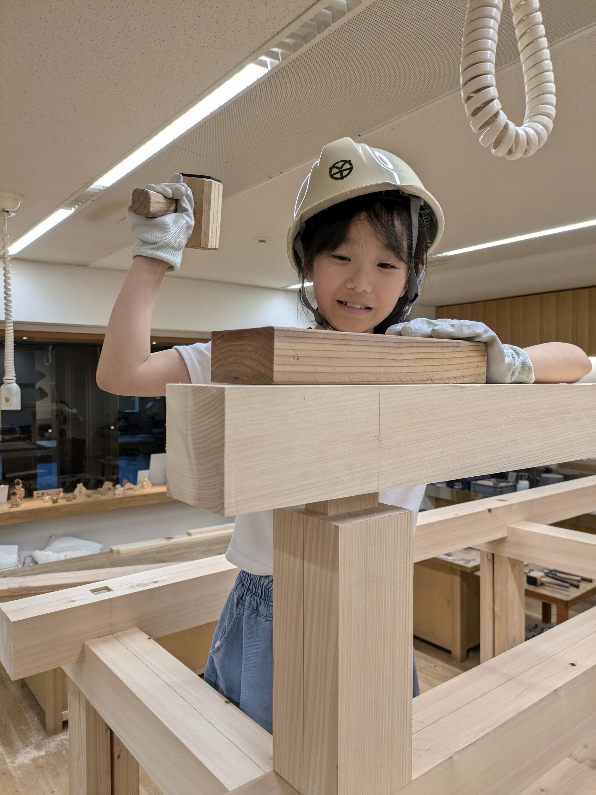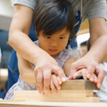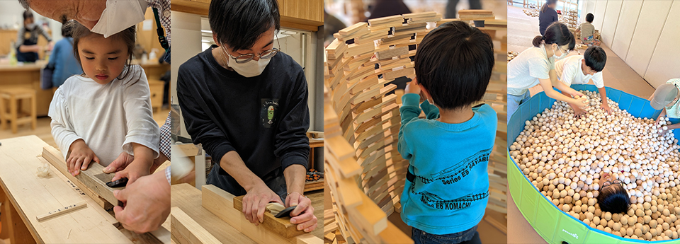 在漂浮着树木香味的空间里,埋在树上、玩耍、削、组装,不试着接触树木吗?