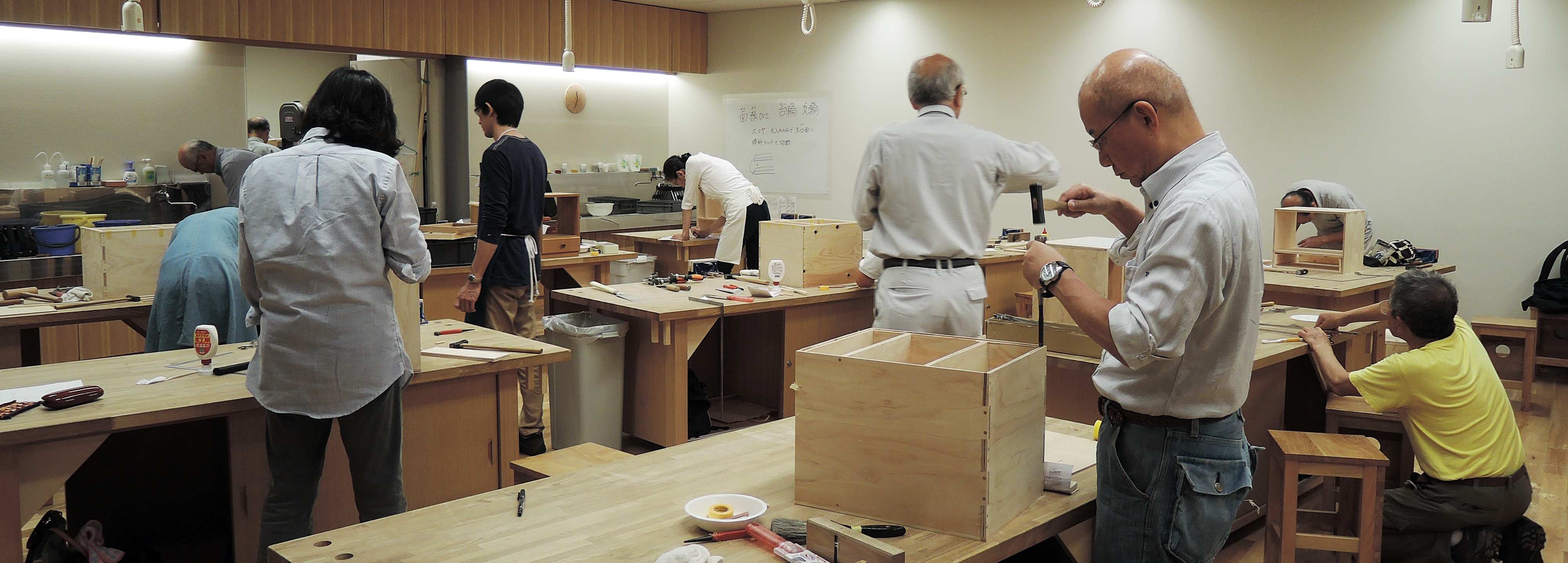 一边从丝柏的板材制作CD架或单行本尺寸的书箱,一边学习工具的正确使用方法等。