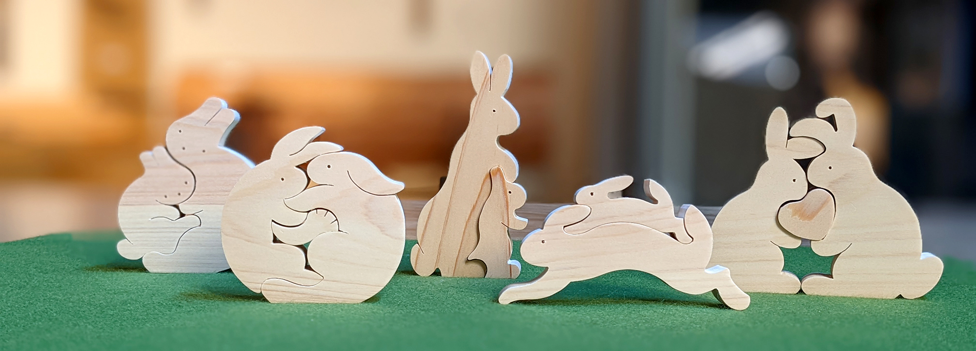 组木作家小黑三郎设计的可爱组木2023年用电动线锯制作天干地支动物。