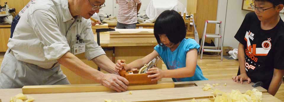 这是和工匠一起使用柑奈砍树,体验树的香味的项目。