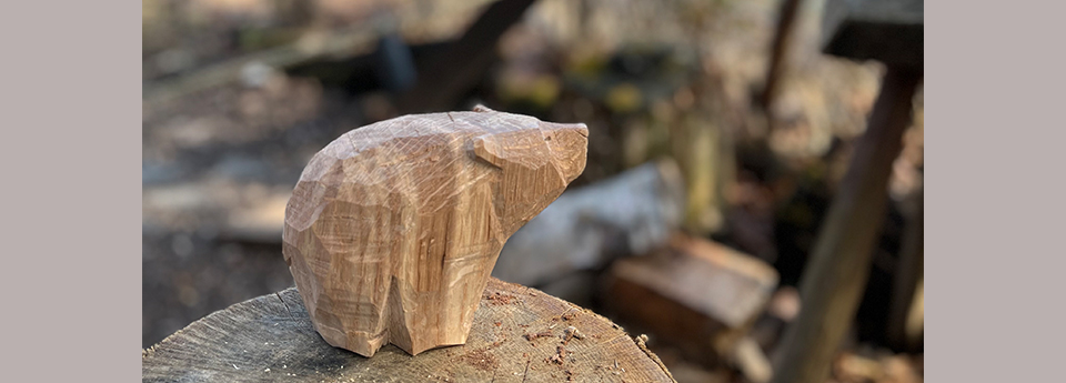 所谓绿色木材工作,是指将在身边的森林中砍伐的不干燥的生木,用手道具劈开或削掉,制作生活道具的木工。这次我们将删去本馆首次登场的熊。