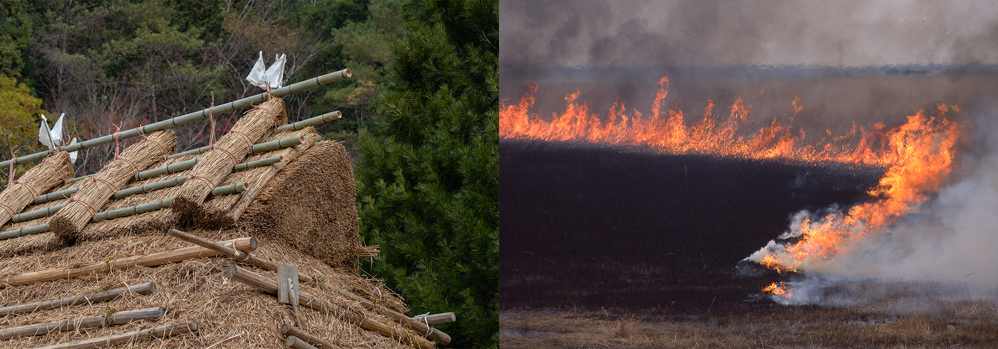 植物学和建筑学,各自的专家多方面地谈论了在里山生存的植物和人的生活的关联。介绍了建筑中使用的植物资源的特征和利用的智慧,在茅场生长的濒危物种的现状,以及从茅草葺工匠的角度看茅场的文化和生态价值等与自然共存的智慧。
