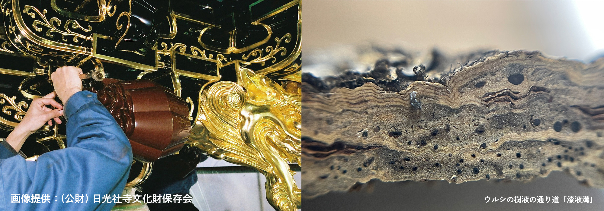 作为建筑物漆涂的涂师,从事了50多年、约90栋日光建筑物修理的经验,关于江户时期的漆涂、彩色、金箔的规格等,请结合涂漆痕、彩色痕迹的事例、文献资料等进行说明。同时,也介绍一下日本产漆刨复活的对策。