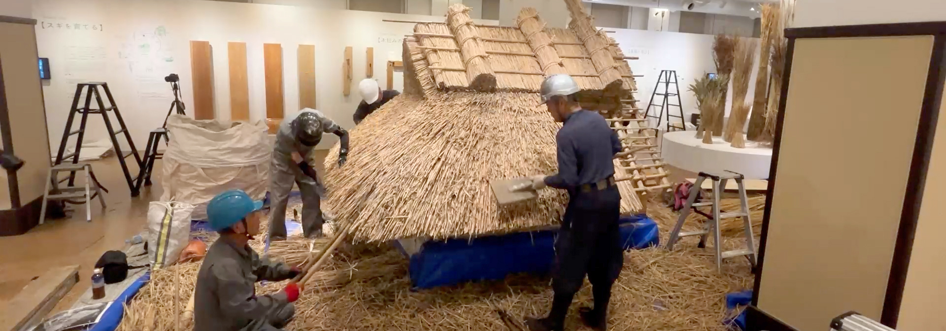 作为开幕活动,在寿原的茅草葺工匠的展示品“茅草葺构造模型”的制作第3天,到展示模型完成为止将公开。请一定要近距离观看由熟练的工匠们难以看到的茅草葺的世界。