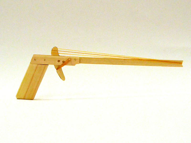 不是一次性筷子,而是用木工制作真正的橡胶枪(3连发)。做得很快的孩子可以用雕刻刀在手柄上装饰。制作后预定举行目标大会。