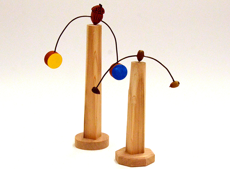 使用木材制作原创的房屋和支撑台。也有用橡子做的椰子的礼物。