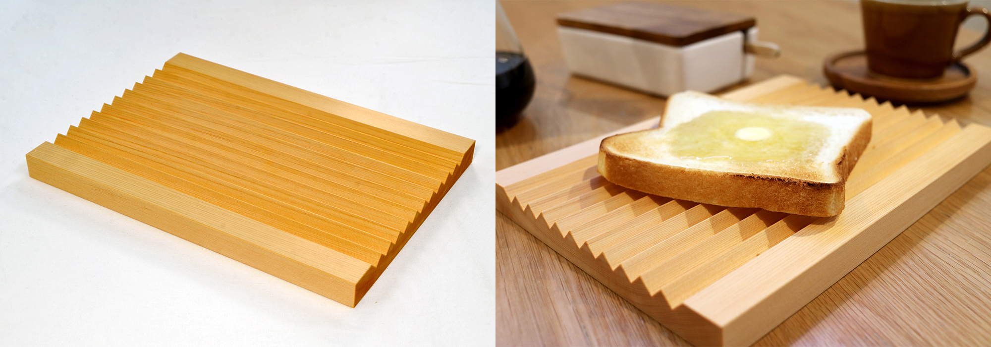 使用栈唐户制作时使用的剑刨制作波浪型的角盘。