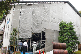 第一个参观地点是园城寺大门(重要文化遗产)。为了修理屋顶,整个屋顶都被完全覆盖了。