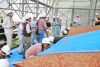 “扁柏树皮葺顶木的现场参观”在滋贺县园城寺(三井寺)举办。