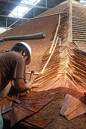 用草做成的“茅草葺”,重叠丝柏树皮的“丝柏皮葺”,以重叠薄板的“木瓦葺”为中心的植物素材的屋顶,用什么样的材料,用什么样的工具和技术来葺,简单易懂地介绍一下。除了展示茅草、桧皮等材料、摩擦葺材的道具和车间的再现、葺屋顶的道具、实物大小的屋顶模型之外,还放映收录了工匠葺屋顶的样子的影像。