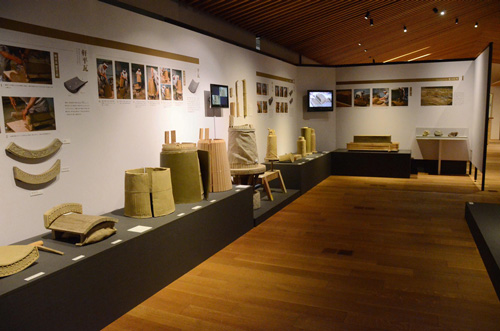这里是“古瓦葺”的角落。展示了在东京会场也好评如潮的屋顶模型(实物大小)。左侧是现代的葺法,右侧是奈良时代的葺法。