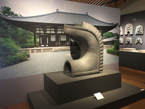 在“制作古代瓦”角,唐招提寺正殿的鱼尾形脊瓦(实物大小)也可以用眼睛高度看到。