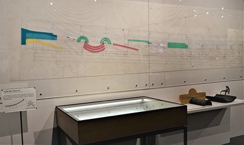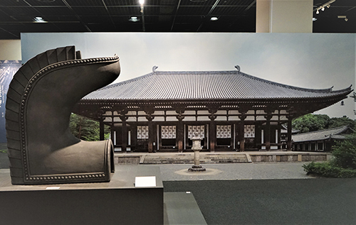 在“制作古代瓦”角还展示了唐招提寺正殿的鱼尾形脊瓦(实物大小)。平时在屋顶的最上面很少看到眼睛的高度,请一定要趁这个机会看看。