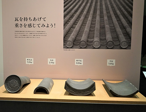 最后是拿起实际的瓦片,感受重量的环节。展示了平城宫遗址大极殿使用的相同瓦片。轩平瓦竟然有6.8公里!