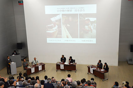 今年的“技与心”演讲会为纪念“中日韩栋梁的技与心”展,举行了中日韩三位栋梁齐聚一堂的演讲会。主持人由东亚建筑史专业的藤井惠介先生(东京大学教授)担任,三位栋梁们的演讲,最后三位登上讲坛的讨论,是非常丰富的活动。
