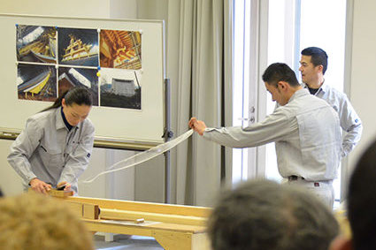 作为本次展览会在东京、神户、名古屋巡回举办的最后一次纪念活动,堂木匠、小川三夫栋梁作为讲师,在丰田产业技术纪念馆举办了现场表演“栋梁讲述的日本建筑技术”。因为是能近距离看到堂木匠技术的宝贵机会,所以当天有260名客人到场。