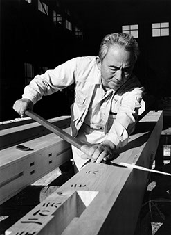 小川三夫/1947年出生。21岁时成为西冈常一氏的弟子,在法轮寺三重塔、药师寺正殿、西塔的重建中担任副栋梁。1977年设立橿工舍,建造各地的堂塔。