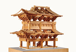法隆寺西冈常一栋梁的唯一弟子小川三夫先生,一边向老师的教诲和古老的工匠学习,一边亲手制作了很多堂塔。本次展览重新制作了小川氏选择的药师寺东院堂的模型,以体现日本式的美丽和构造。请欣赏与中国、韩国不同的日本建筑之美。