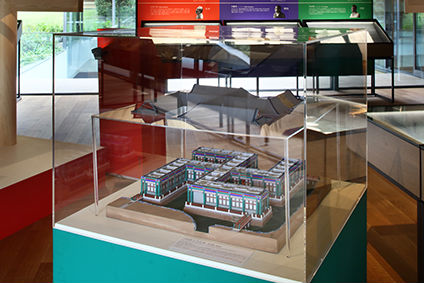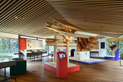 展示会场是刚刚重新开放的新馆,1楼大厅。这是一个利用木架天花板和开放空间的展示。
