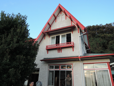 在旧古根海姆邸,拥有和管理该邸的森本阿里先生对建筑物进行了解说。到现在为止被称为1909年的建筑物,不过,根据最近古根海姆先生的亲属的资料,不是1911年吗。