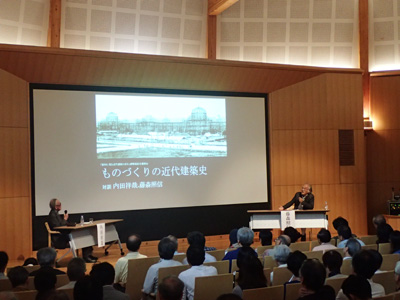 作为在东京汤岛国立近代建筑资料馆举办的展览会“从资料中看到近代建筑的历程”的纪念活动,6月12日(星期日)举办了演讲会“制作近代建筑史”。讲师是内田祥哉和藤森照信。和去年11月在神户召开的同题演讲会一样,两位从各自的视点讲述了近代建筑的技术和工匠。