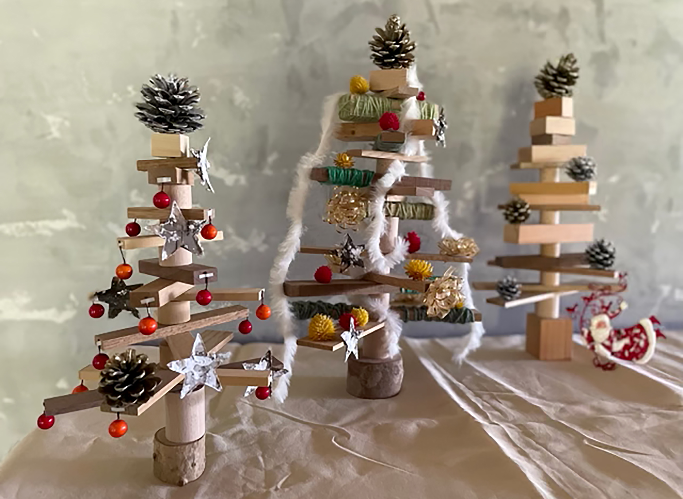 用木头制成的圣诞树:亲子一起开心地装饰吧