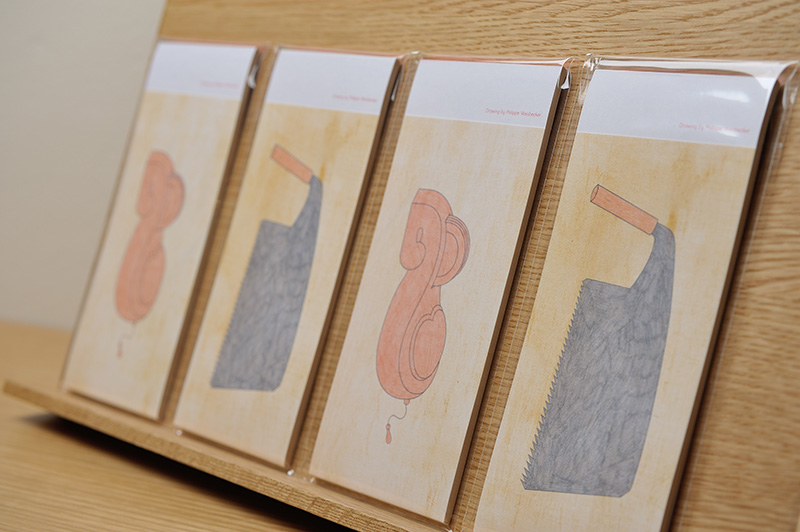 博物馆商店以“木”和“道具”为概念,为了让大家更切身地感受到只有展示无法传达的树木的温暖和木匠工具的优点,本馆贩卖商品。以本馆原创的手巾、丝柏铅笔、美术明信片为首,准备了木鸡蛋、木匠道具主题的钥匙圈、肥后守、企划展图录等。来馆的时候,请一定要好好享受购物的乐趣。