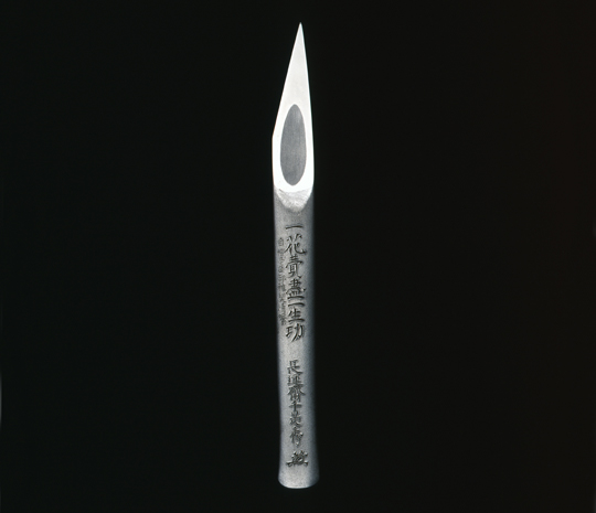 千代鹤是秀 (千禧一代) | 本名加藤广。生于1874年。父亲是侍奉米泽藩上杉家的刀匠第二代长运斋纲俊。1876年因废刀令而从刀匠转向道具锻造的叔父石堂寿永,11岁时入门。精心研究前人的技能,加上名门刀匠家的文化素养,创作出了许多杰作。1957年,享年84岁。 摄影:藤原正 | ||||||||||||