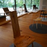 “一脚展”是在兵库县内活动的家具作家们每年都会发表新作的椅子“一脚”,作为让到场的人们也能实际坐着比较这些作品,亲身感受到的展览会而举办的。这次通过影像等介绍了作为素材的“木”作为“椅子”重生之前的工序,组装后看不到的做法等。并且作为特别企划,参考过去9次实施的问卷调查选择的,到现在为止的人气作品也排列在一起。请一定要享受各种各样树种树木的香味和充满个性椅子的空间。