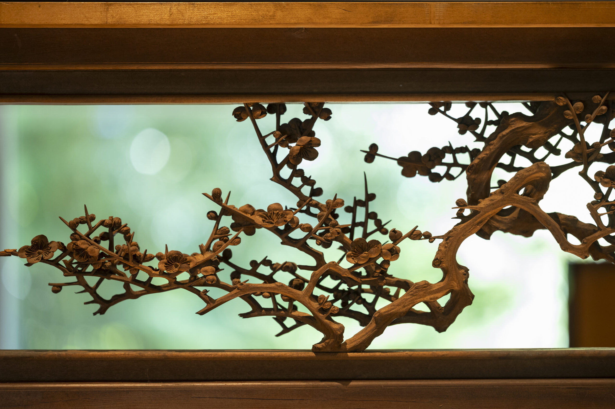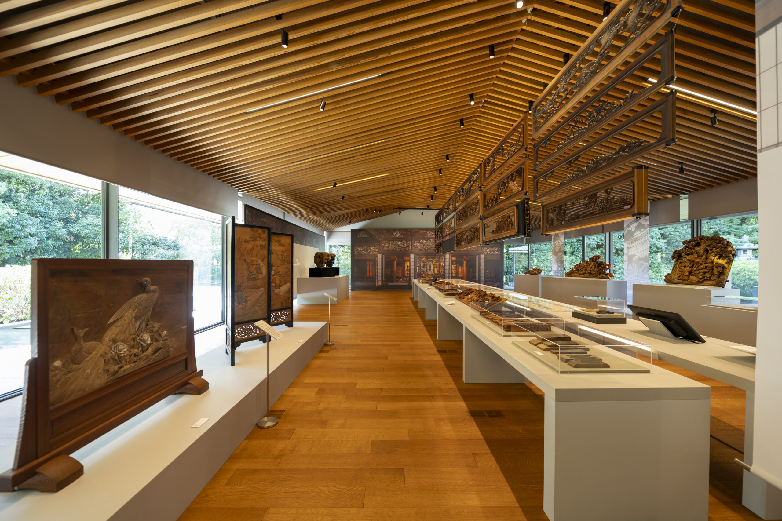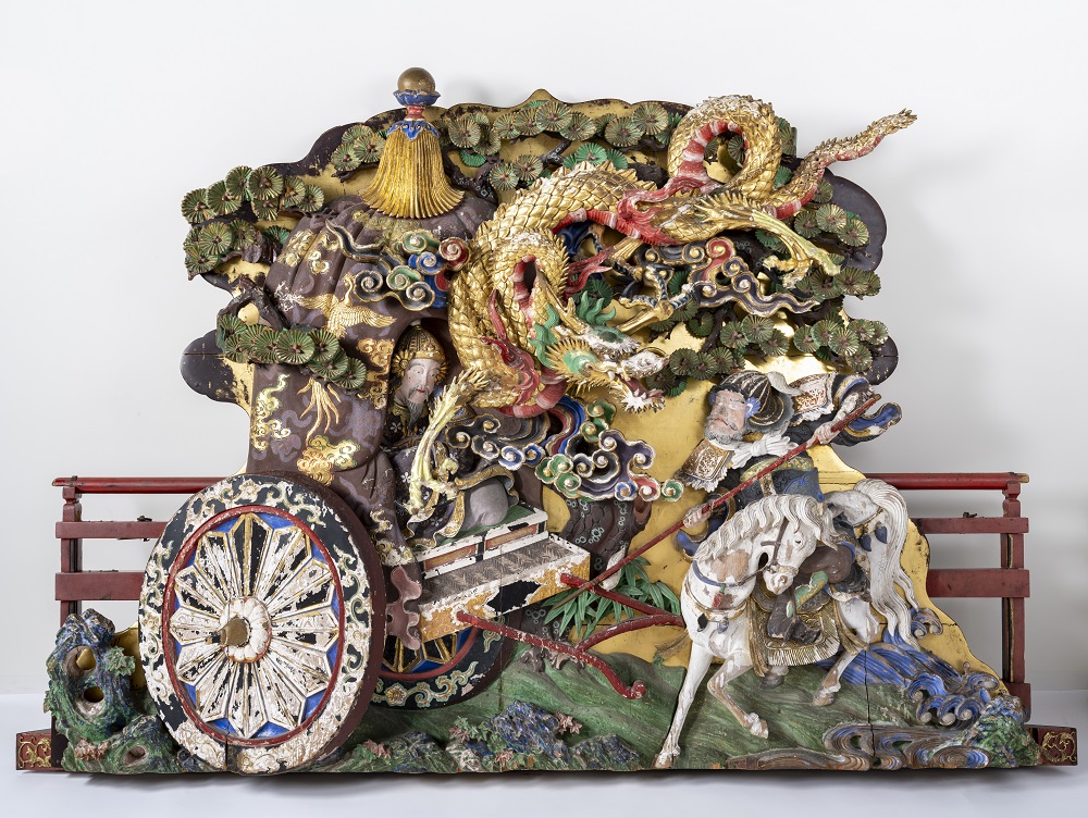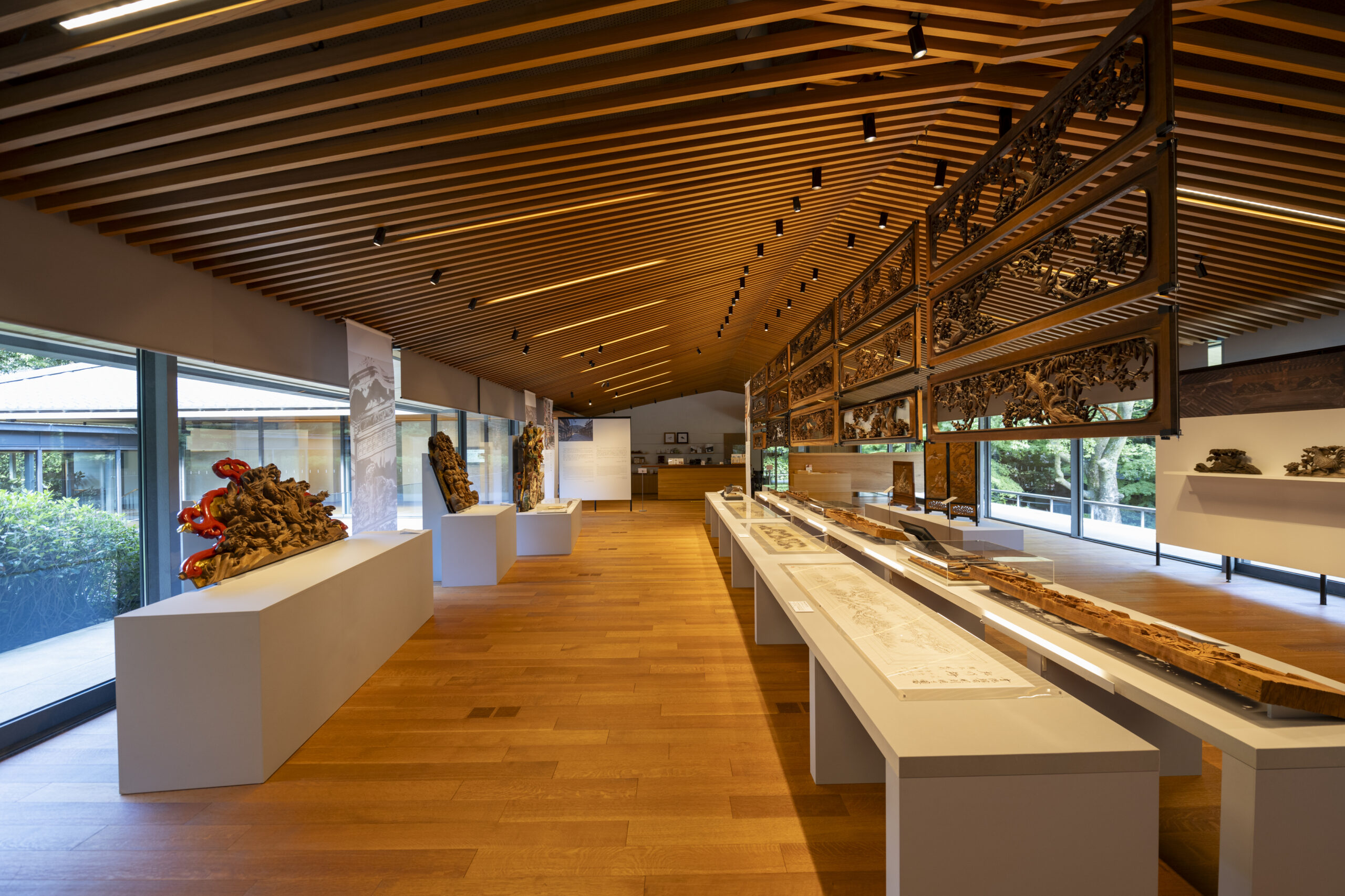 展览会上,展示了大胆的深雕刻、浓缩了高度的木雕技术的寺院雕刻、装饰豪华绚烂的祭祀摊子的精致的彩车雕刻,以及明治时期以后作为住宅栏杆发展了巨大的纤细优美的雕刻栏杆等。另外,使用200支以上的凿子和雕刻刀的制作工序将通过实际使用的道具和底图、影像等进行介绍。