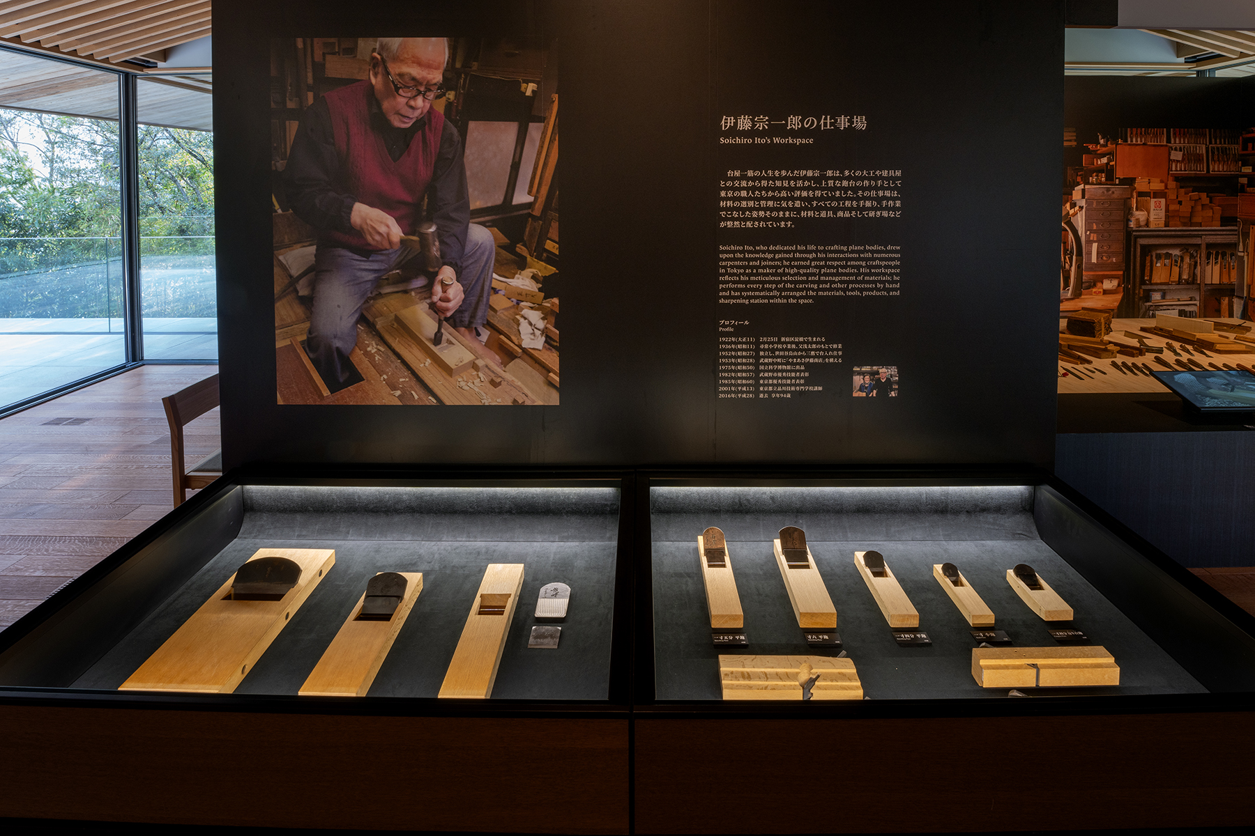 在展览会上,以“不放松”、“不疯狂”的刨台名人而闻名的刨台工匠、山田伊藤商店店主伊藤宗一郎先生(1922-2017)为中心,主要介绍活跃在东京近郊的台店们的工作。