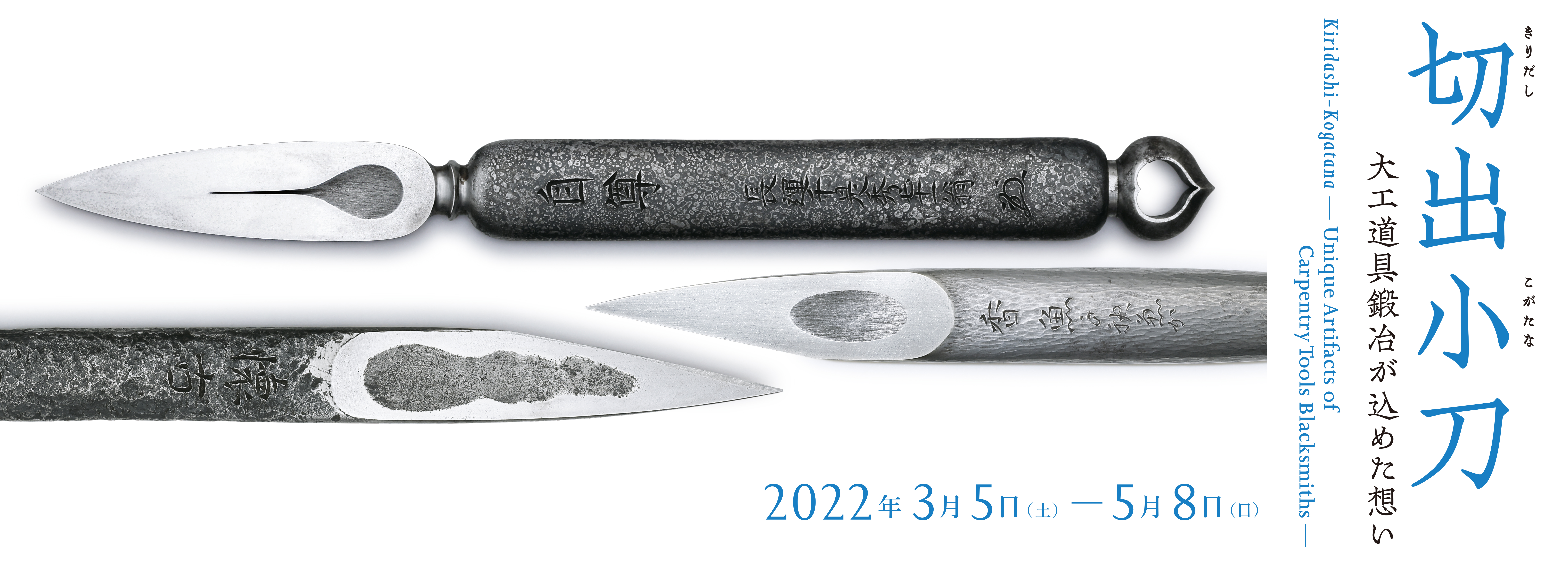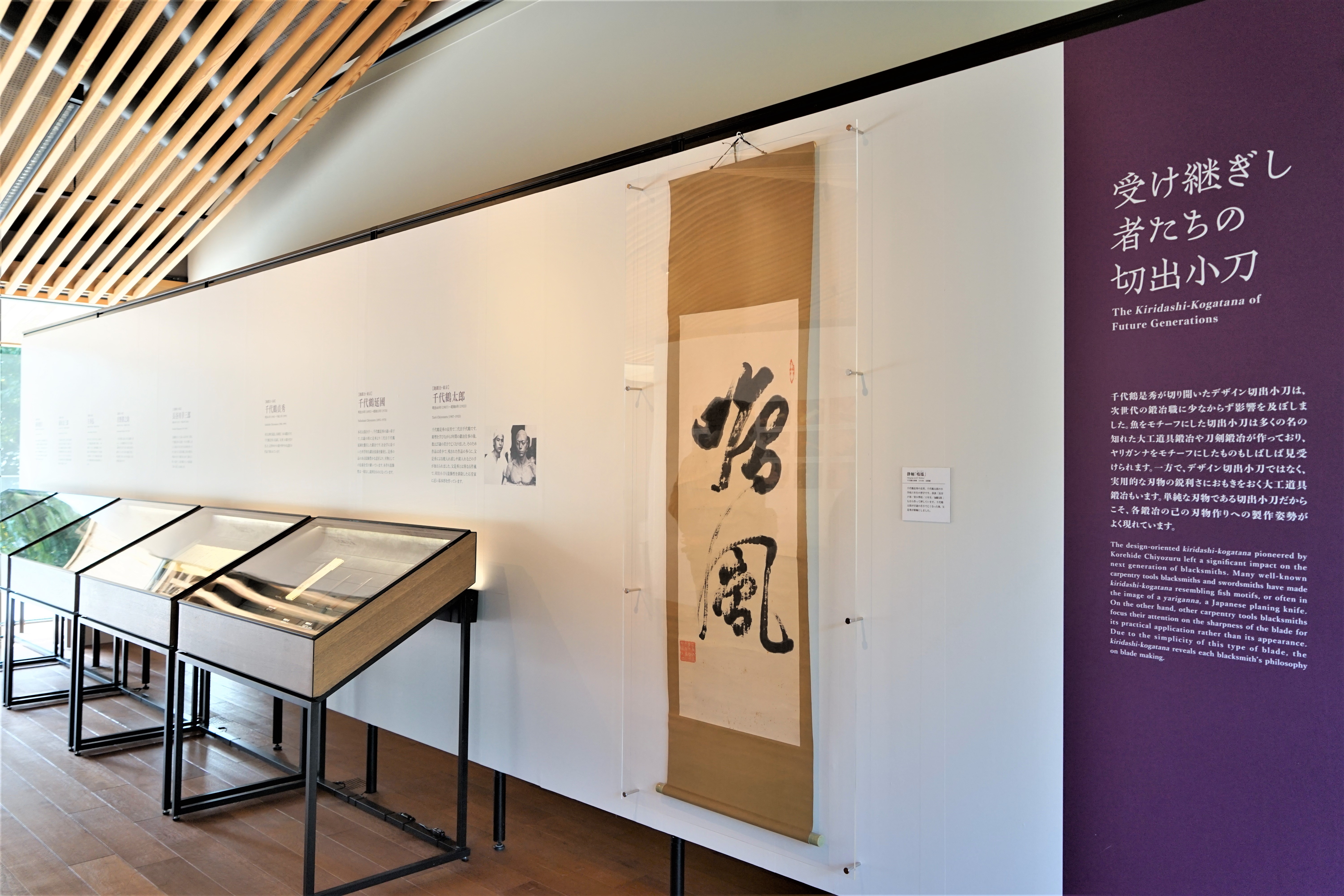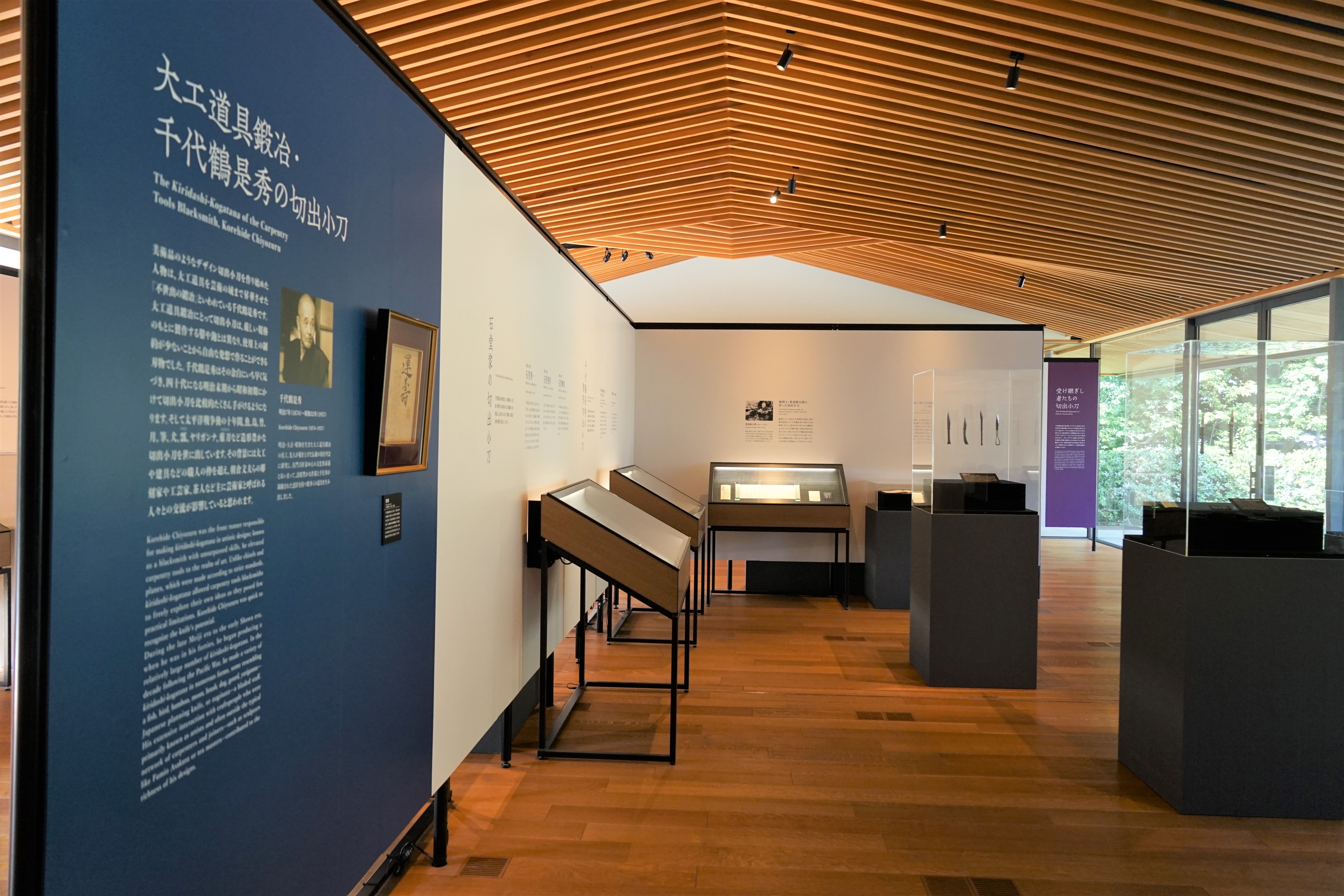 木造建筑、木工、木雕、竹制工艺品等多用途的小型刀具之一“切出小刀”。这次以千代鹤是秀作的切出小刀“自尊”“怀古”为首,石堂秀一、千代鹤太郎、长谷川幸三郎、宫野铁之助等极致用之美的木匠锻造名匠制作的许多切出小刀将在一堂展出。