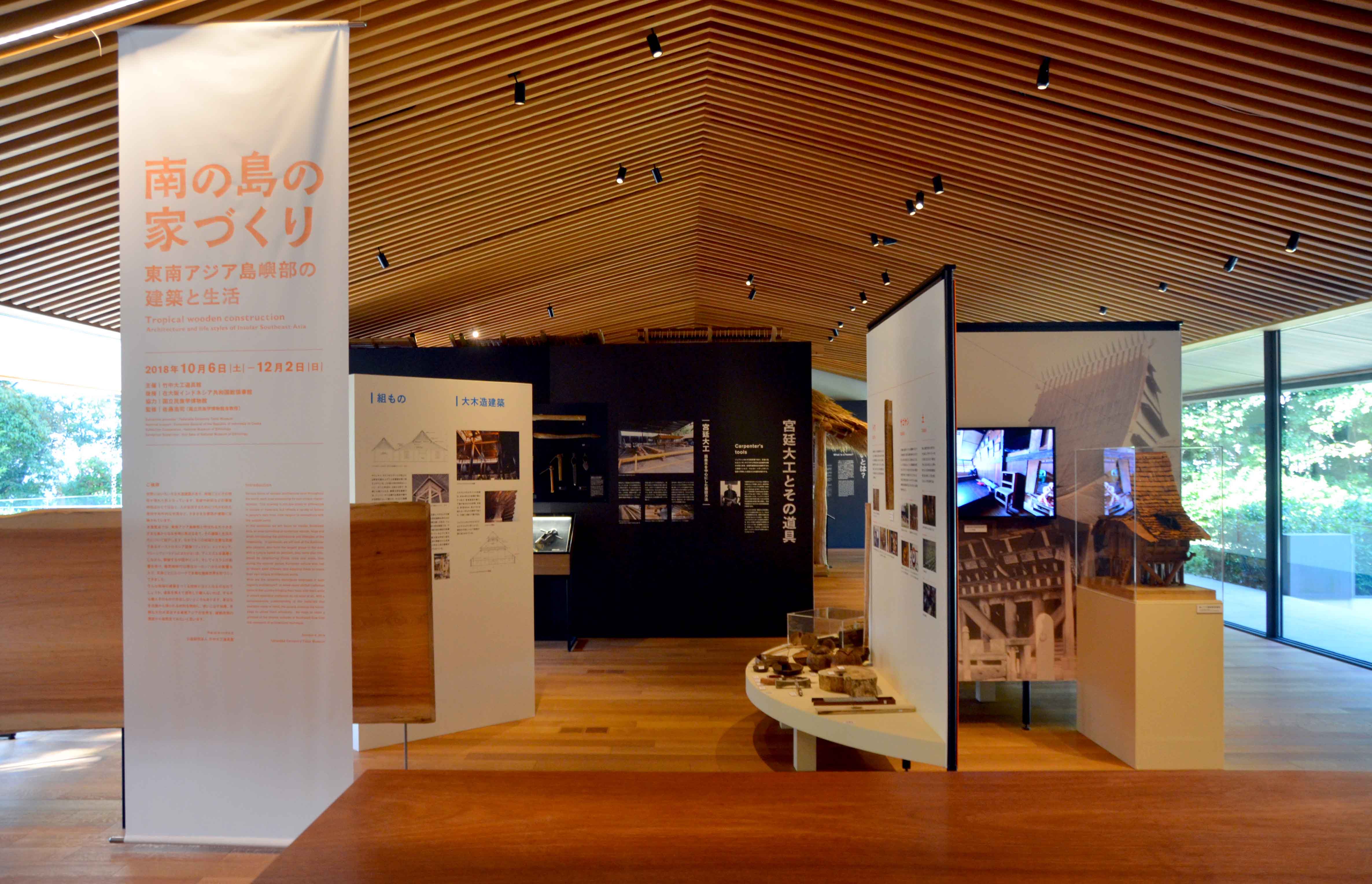 本次展览会以被称为东南亚岛屿部的大小不一的岛屿构成的地域为焦点,介绍其建筑和生活文化。其中,作为该地区主要民族的奥斯特罗尼西亚语族(跨越菲律宾、印度尼西亚、马来西亚和越南),以动物主义为基础,受到邻近中国、印度和伊斯兰的影响,殖民时代以后也受到了欧洲的影响,每个民族都形成了独特多样的建筑世界。建造这样一个地区的建筑技术是怎样的呢?既有带着道具渡来的工匠,也有原本工匠本身就不存在的地方。熟悉并运用从身边生活圈得到的材料的智慧。我想从建筑技术的侧面窥见融合了多样文化的东南亚世界。